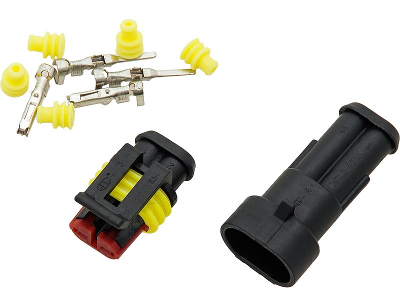 Komplett kontakthus med Han- och Hon-kontakt med tätmembran och anslutningsstift.