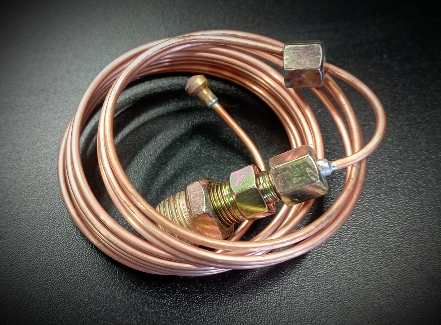 Kopparrör på 2m, lödda konor i bägge ändar och dubbla gängade adapters med 1/8" och 1/4" NPT gänga. Smart uträknat och väldigt hög kvalitet!
